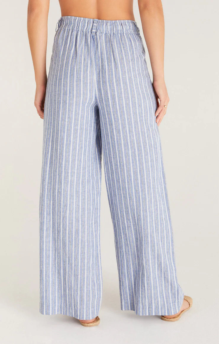 Made using our breezy and elevated Textured Rayon Linen Gauze fabric, this high rise pant features a full, wide leg, double button detail and pockets.