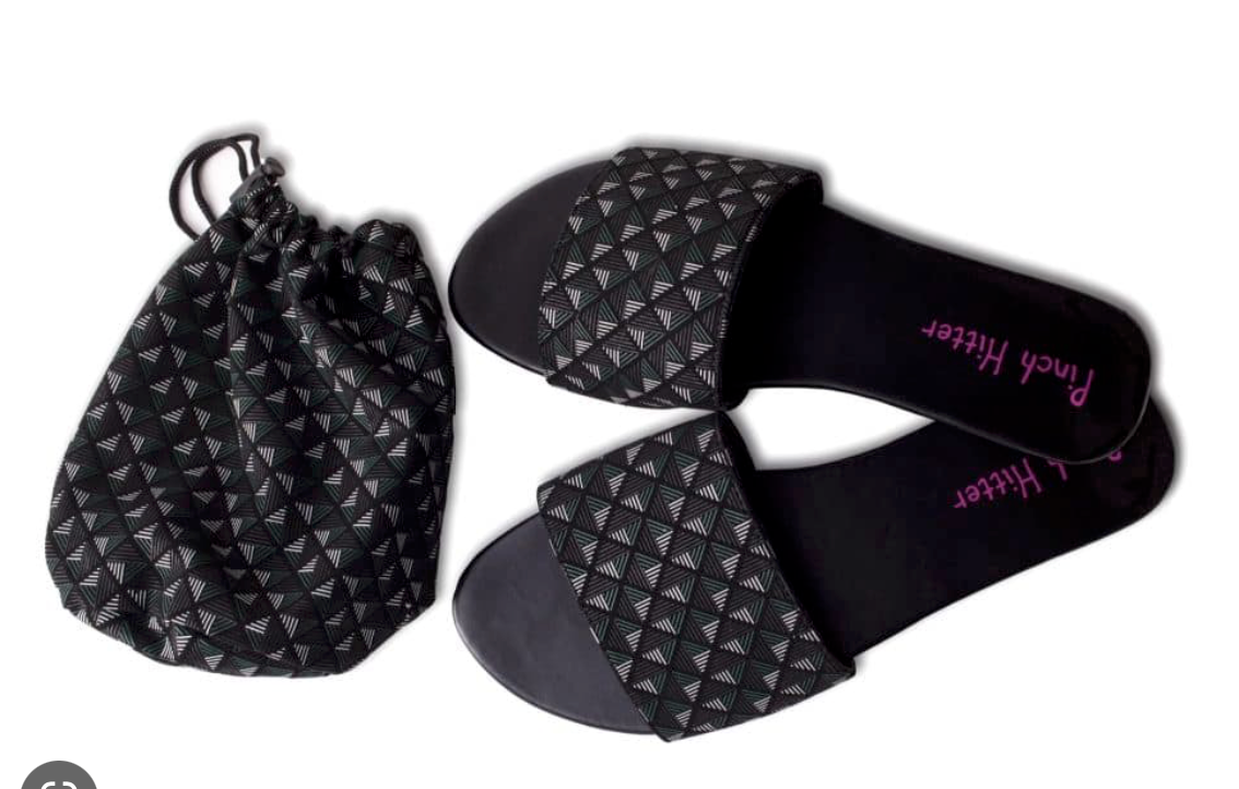 Foldable shoes with matching pouch. Shoes made of flexible PU and TPR. Pouch is PU with Polyester Lining. Made to wear time and time again, can last from 2 to 5 years.