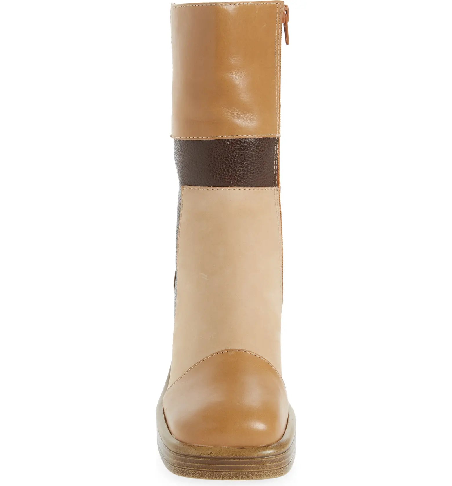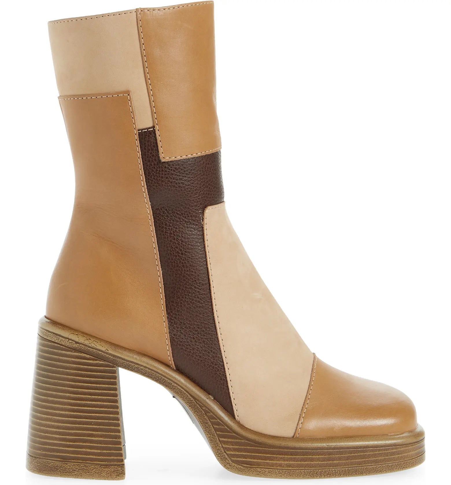 Steve Madden FANTSIE-P Patchwork Leather Block Heel Booties in Multi Tan